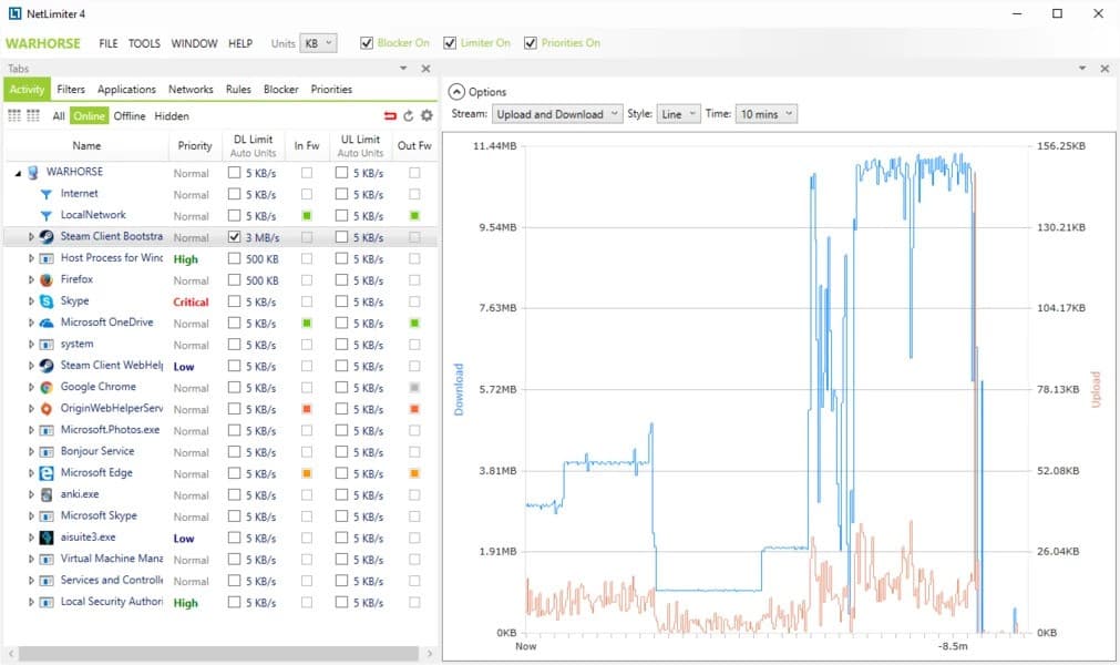 يمكنك هذا البرنامج من المراقبة والتحكم في سرعة الانترنت لكل التطبيقات والاتصالات على جهاز الكمبيوتر الخاص بك