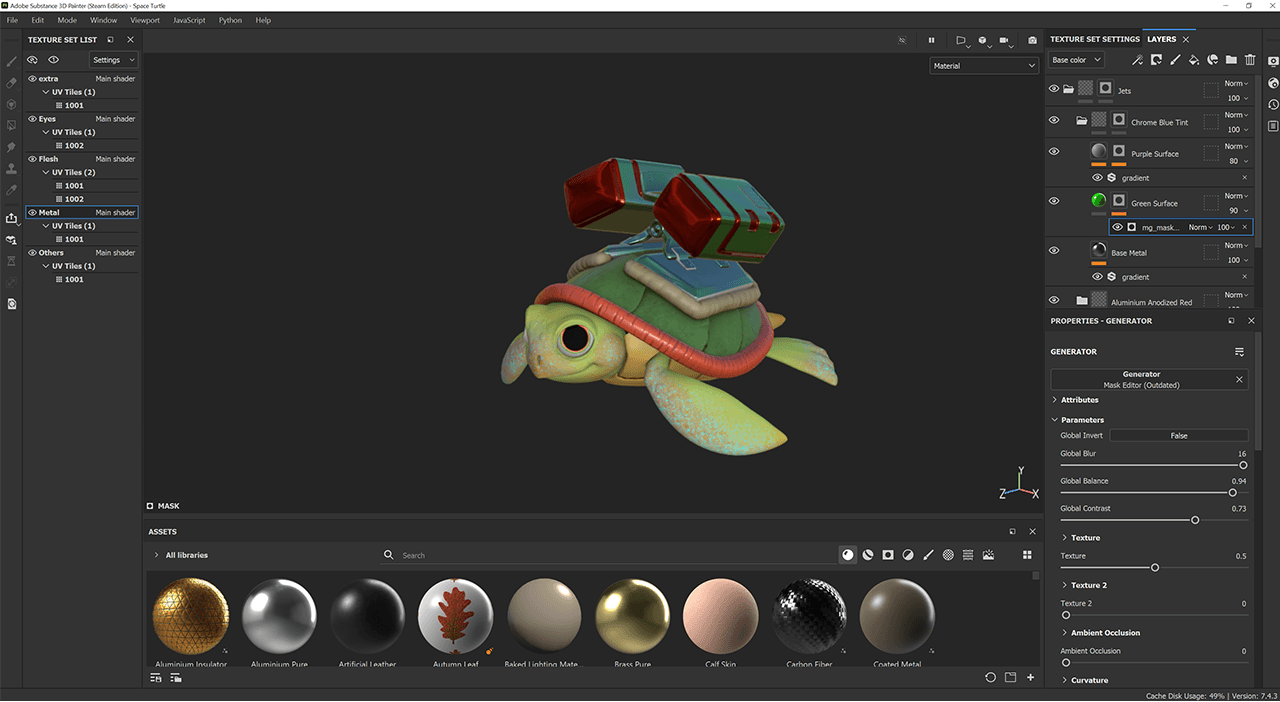 Adobe Substance 3D Painter for drawing 3D designs and adding textures and materials directly to 3D meshes in real time