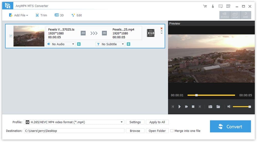 AnyMP4 MTS Converter program to convert video to all other formats with high quality