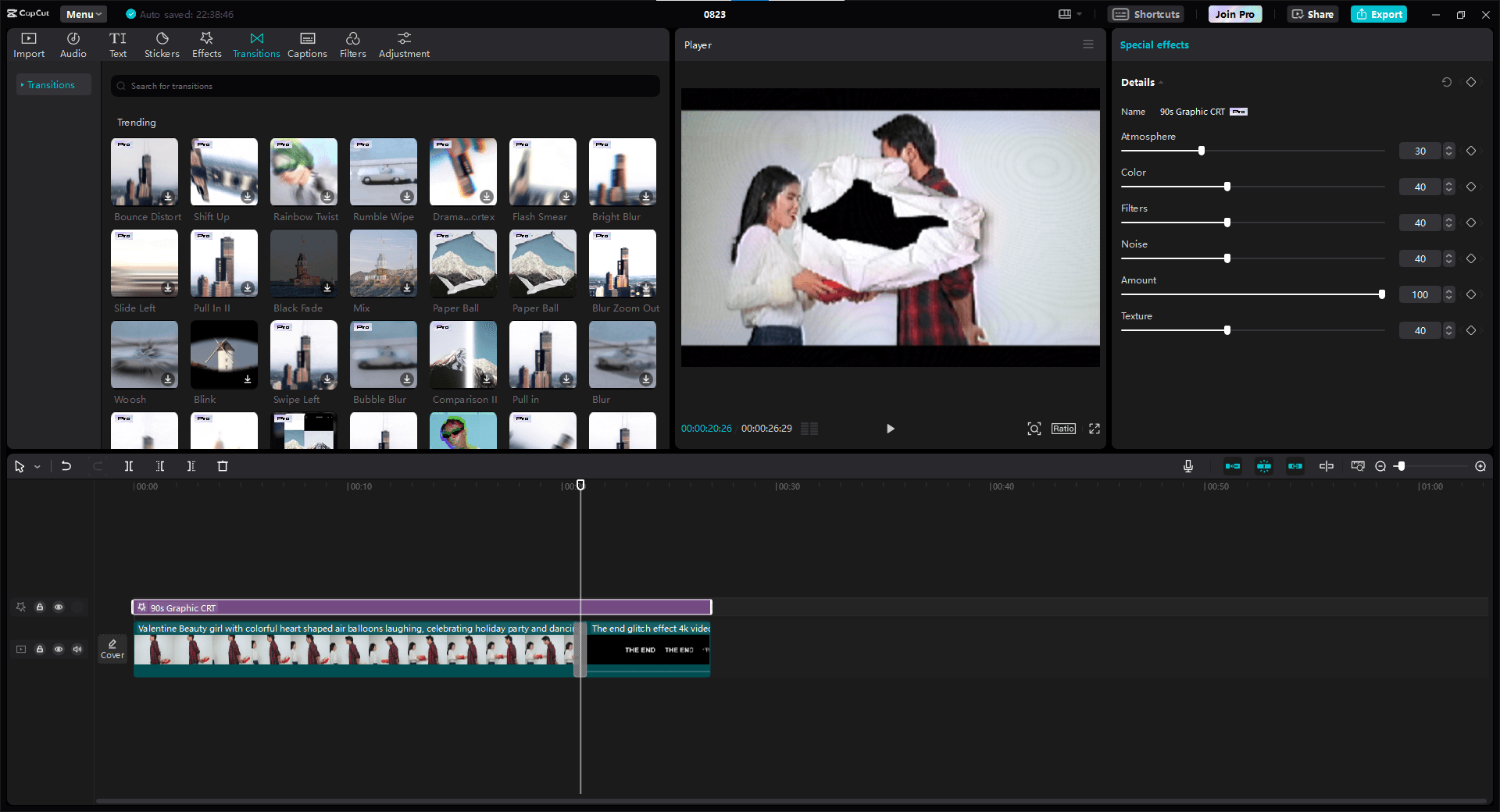 Using CapCut, you can cut and edit video clips and modify them professionally with ease, with a wide library of sounds and effects.