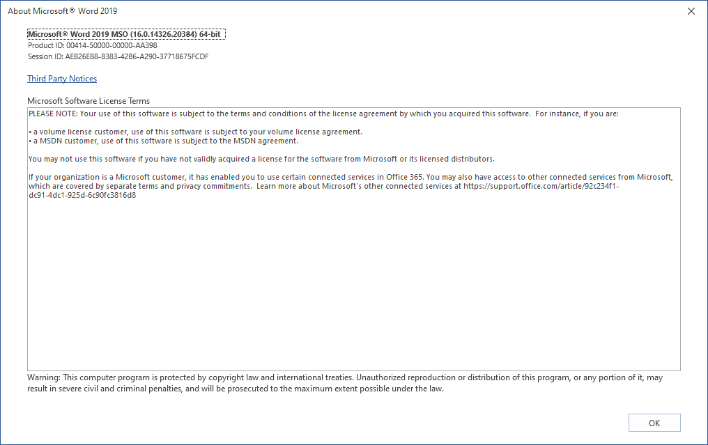 | Version | 2019-2108.Build.14326.20404 | |