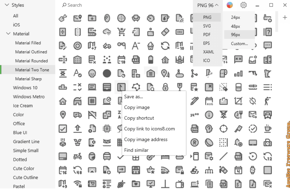 Pichon (Icons8) offers a large collection of icons for use in desktop, mobile, web and applications.