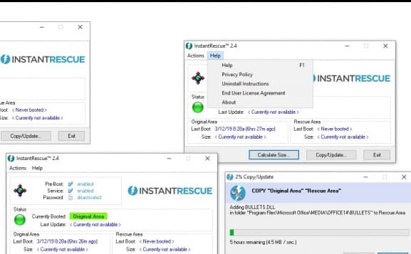 Raxco InstantRescue creates an automatic restore point to use when the system is damaged, and the program performs a complete automatic recovery after 3 operations that cannot fail.