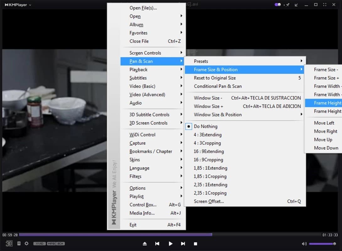 The KMPlayer is a multimedia player that supports most audio and video formats. It also supports text subtitles for movies, with the ability to control them and change their appearance location, color, and size.