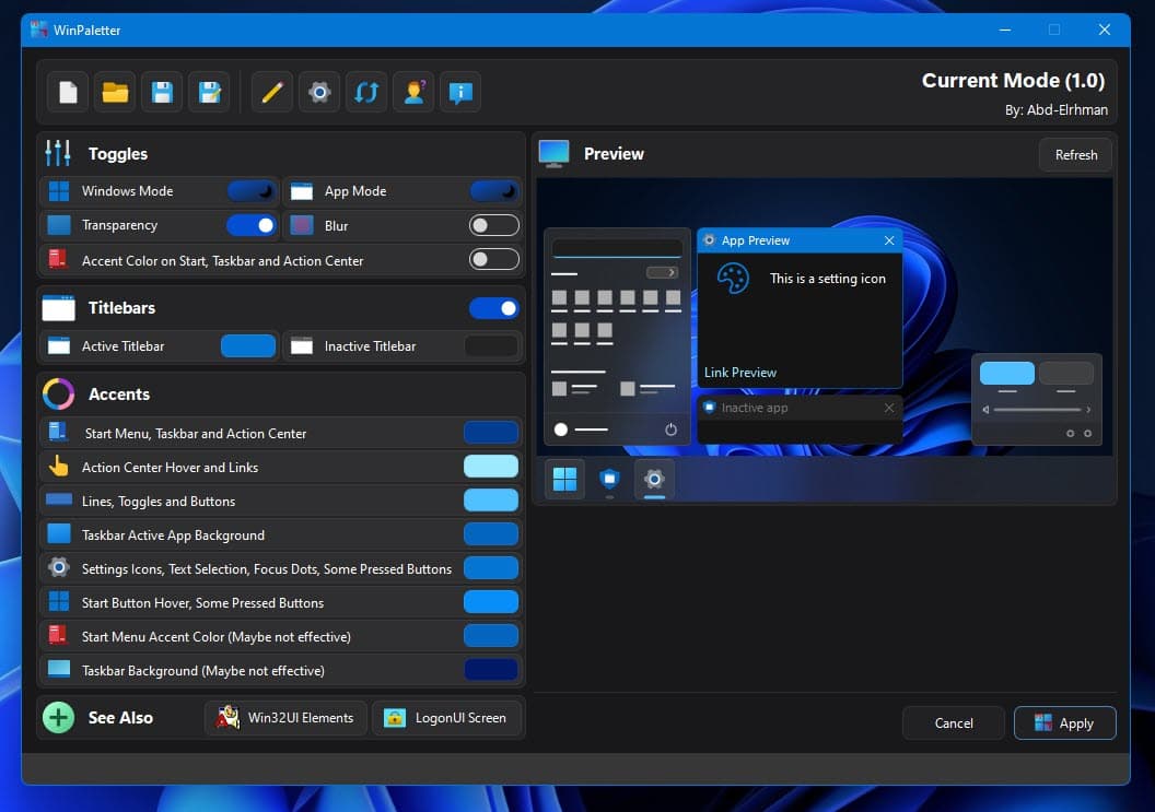 This program gives you the ability to change the colors of your Windows interface and preview the changes before applying them to get the best result